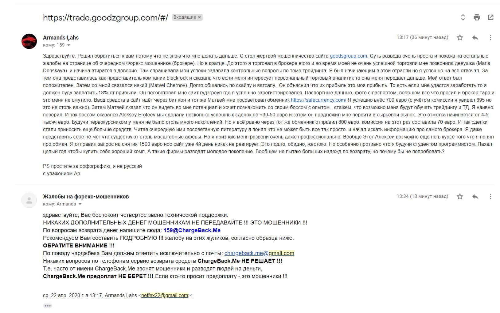 - Мошенники Goodz Group и SafeCurrency кинули клиента как минимум на 700 $