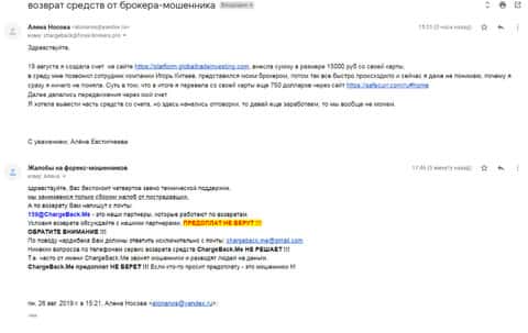 На ниже расположенном изображении вы можете увидеть еще одну реальную жалобу в сторону шулеров Safe Currency и Глобал Трейд Инвестинг, которые довольно нагло и оперативно опрокинули еще одного наивного пользователя сети интернет, в которой аферисты Сейф Карренси с помощью своего менеджера-мошенника нагло развели клиента на деньги.