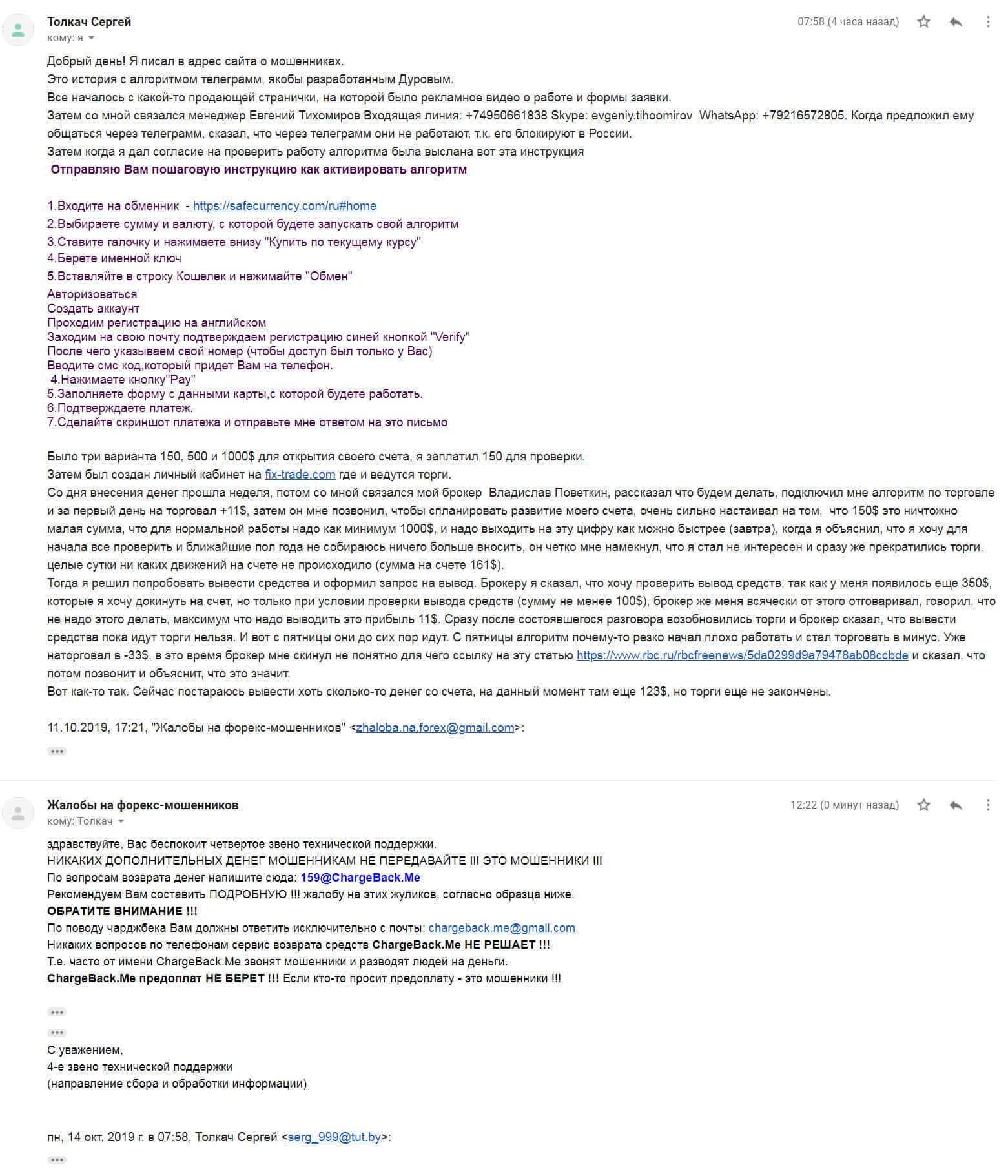 Жалоба аферистов SafeCurrency и Fix-Trade