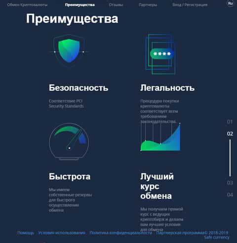 Начинается сайт у лохотрона Сейф Карренси с довольно стандартной и типичной шапки сайта, в которой у мошенников Safe Currency находится описание их подвальной конторы, а также услуг, которые якобы предоставляют аферисты Сейф Карренси. На изображении, расположенном ниже, вы можете наглядно увидеть начало подвального сайта лохотрона Safe Currency.