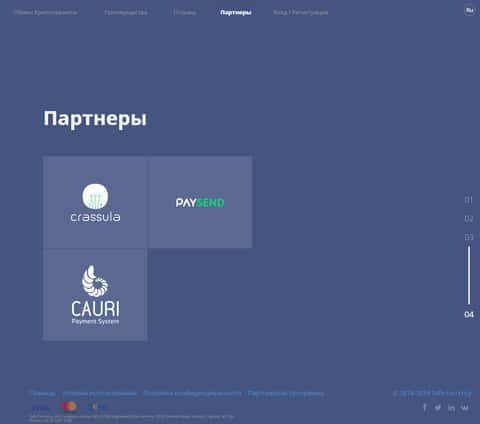 Завершается же сайт у шулеров Safe Currency довольно стандартно и ожидаемо, хотя и кратко, а именно ссылками на различные разделы подвального сайта лохотрона Сейф Карренси и блоком о партнерах жуликов Safe Currency, на репутации которых аферисты Сейф Карренси. На изображении, расположенном ниже, вы можете наглядно увидеть, как завершается сайт у лохотрона Safe Currency.