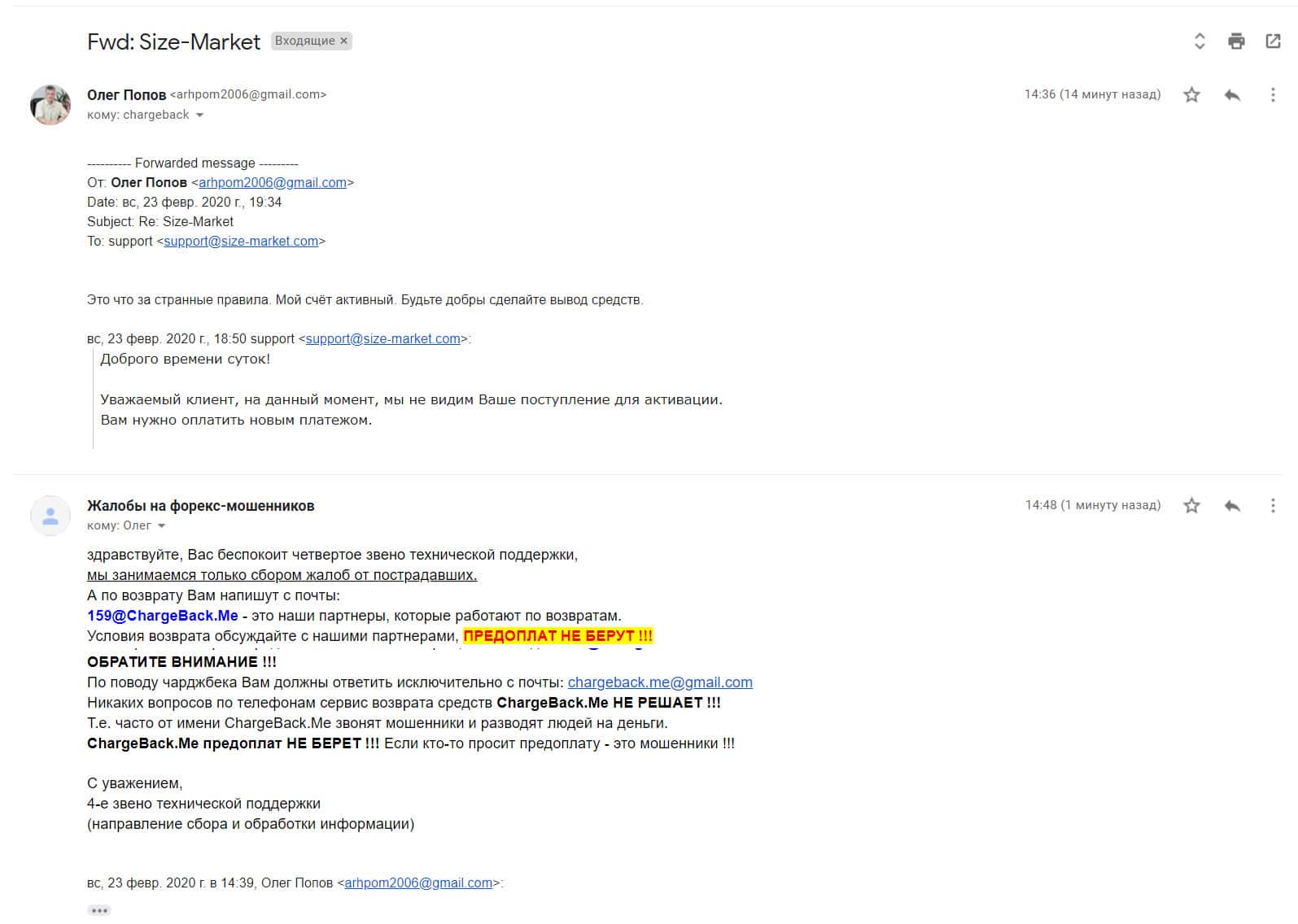 - Аферисты SizeMarket всеми силами пытаются вытащить из клиента как можно больше денег