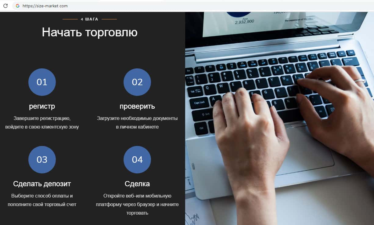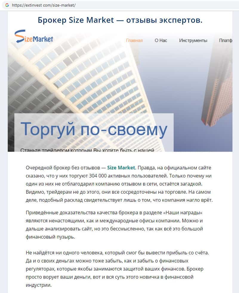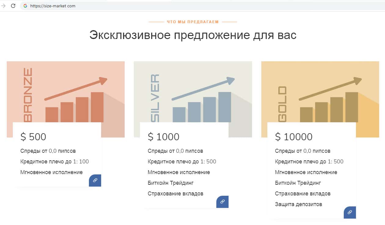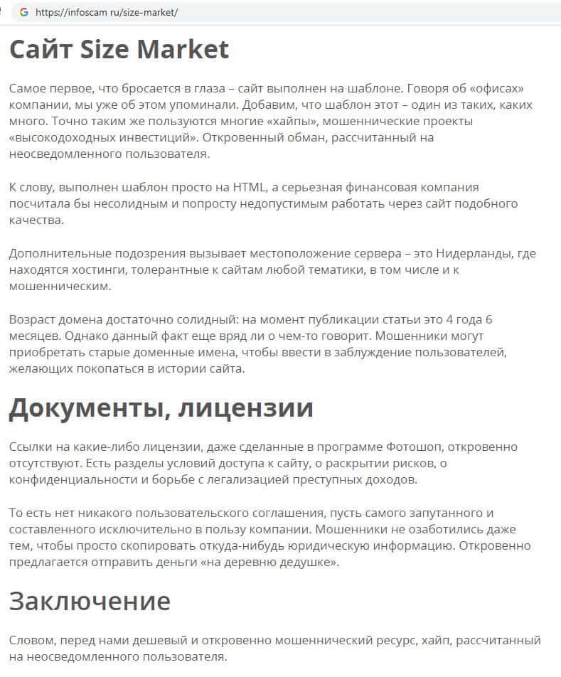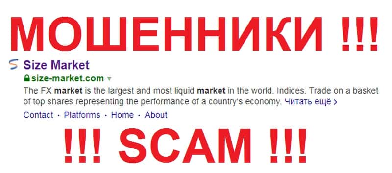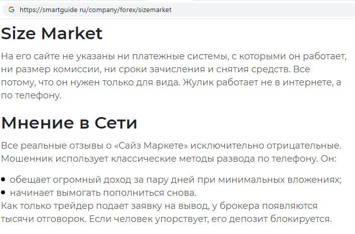 - Фейковая брокерская контора SizeMarket не заслуживает никакого доверия