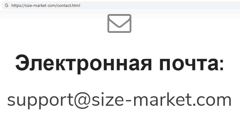 Жульническая организация Сайз Маркет, о местонахождении главного офиса которой ничего не известно, на своем официальном сайте не указала номера контактного телефона своей организации, но при этом аферисты указывают только адрес электронной почты своей конторы, который указан ниже: