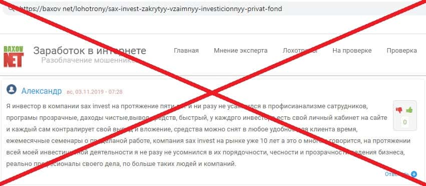 baxov net - интернет ресурс с обзором мошеннической организации Сакс Инвест