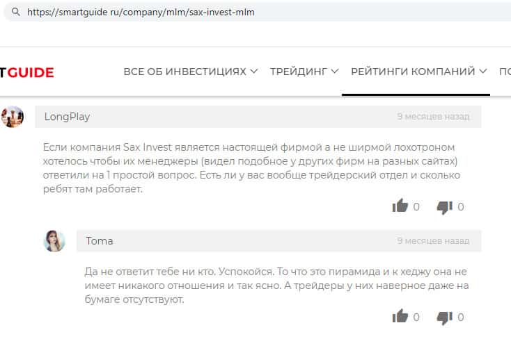 Кидалы SaxInvest Net публикуют фальшивые отзыва что бы поднять свою популярность
