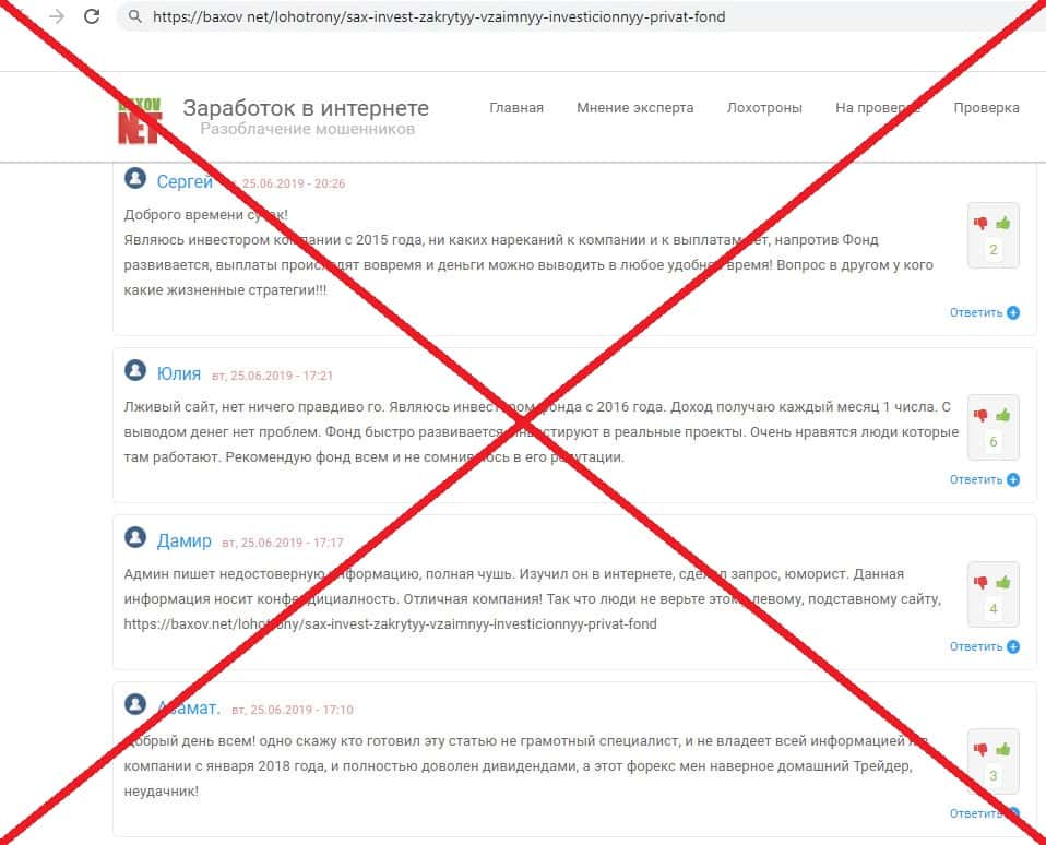 - Кидалы SaxInvest Net публикуют фальшивые отзыва что бы поднять свою популярность