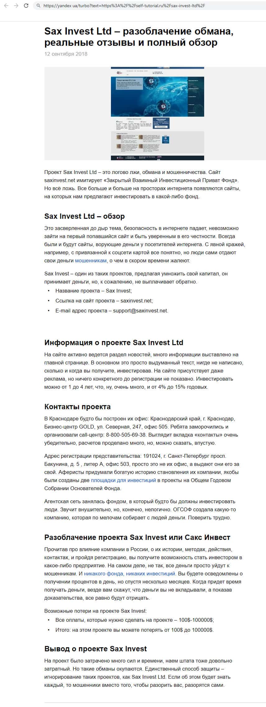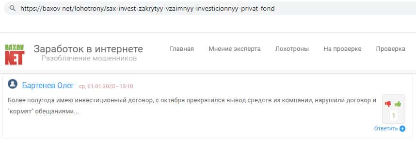 Мнение других интернет ресурсов о лохотроне SaxInvest Net