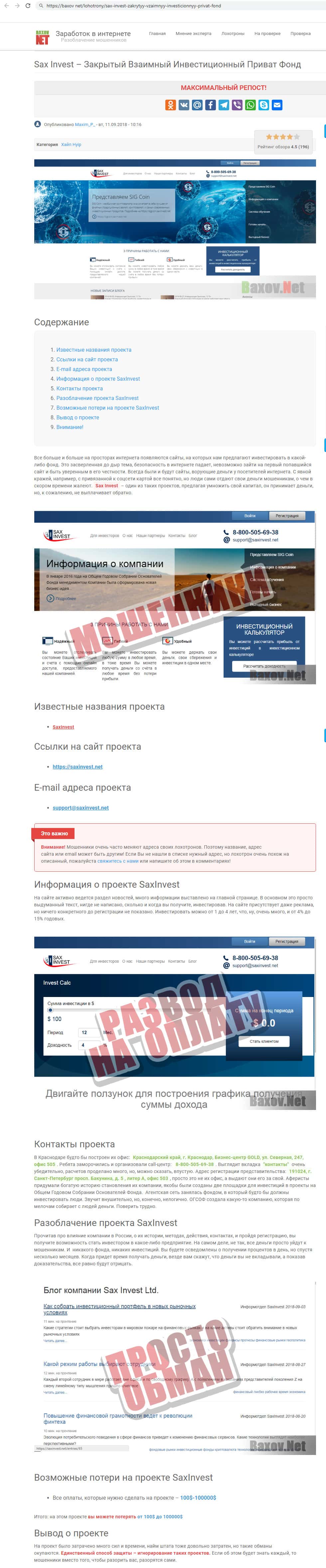 - Обзор главного интернет ресурса компании махинаторов SaxInvest Net