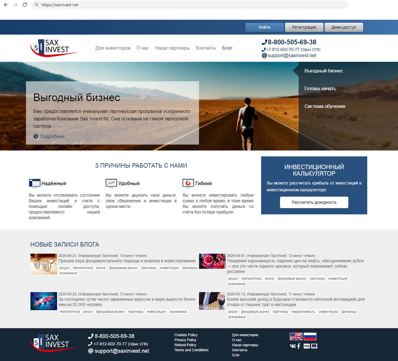 Обзор главного интернет ресурса компании махинаторов SaxInvest Net