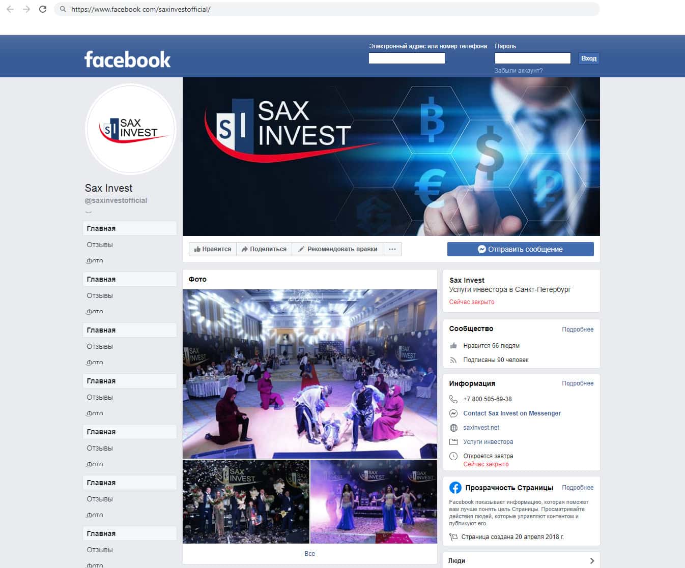 Нам удалось найти страницу кидал Сакс Инвест на самой популярной социальной сети в мире - фейсбуке. Там компания набрала 90 подписчиков, что является крайне малым числом, учитывая количество пользователей, которые сидят на этом сайте. Видимо никто не хочет обращать внимание на таких мошенников, так как сразу заподозрили неладной в компании.