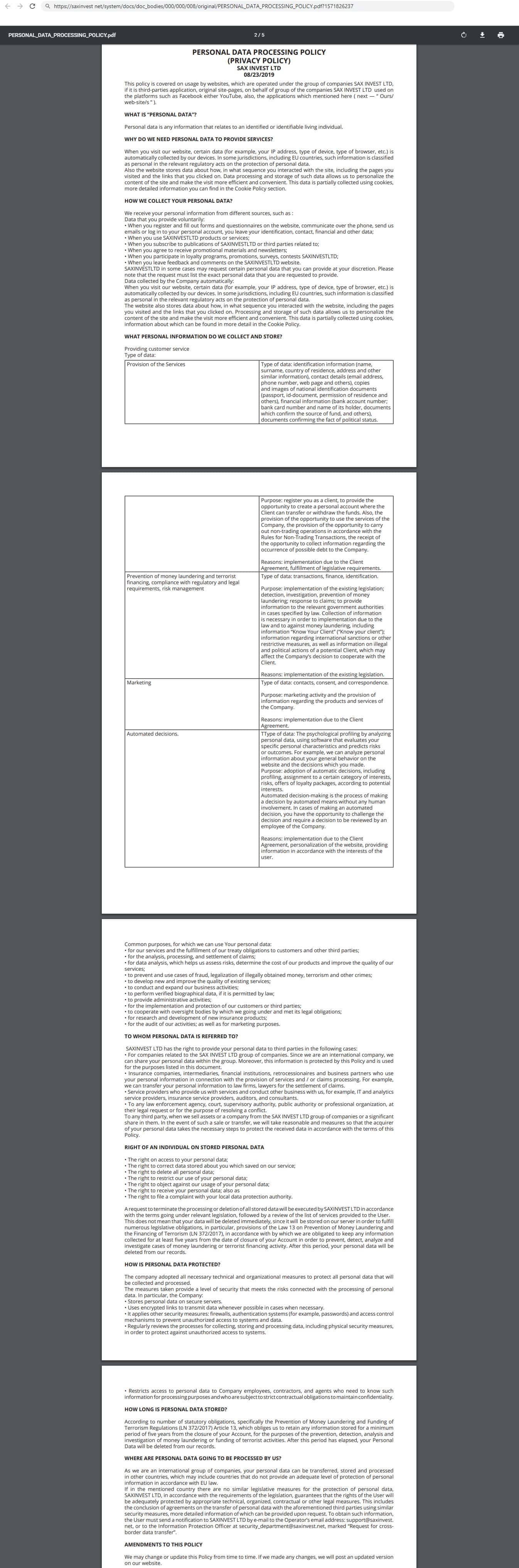 - Лохотрон SaxInvest Net предоставил свою политику конфиденциальности