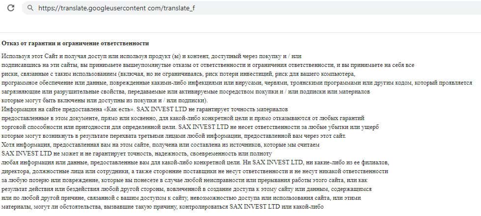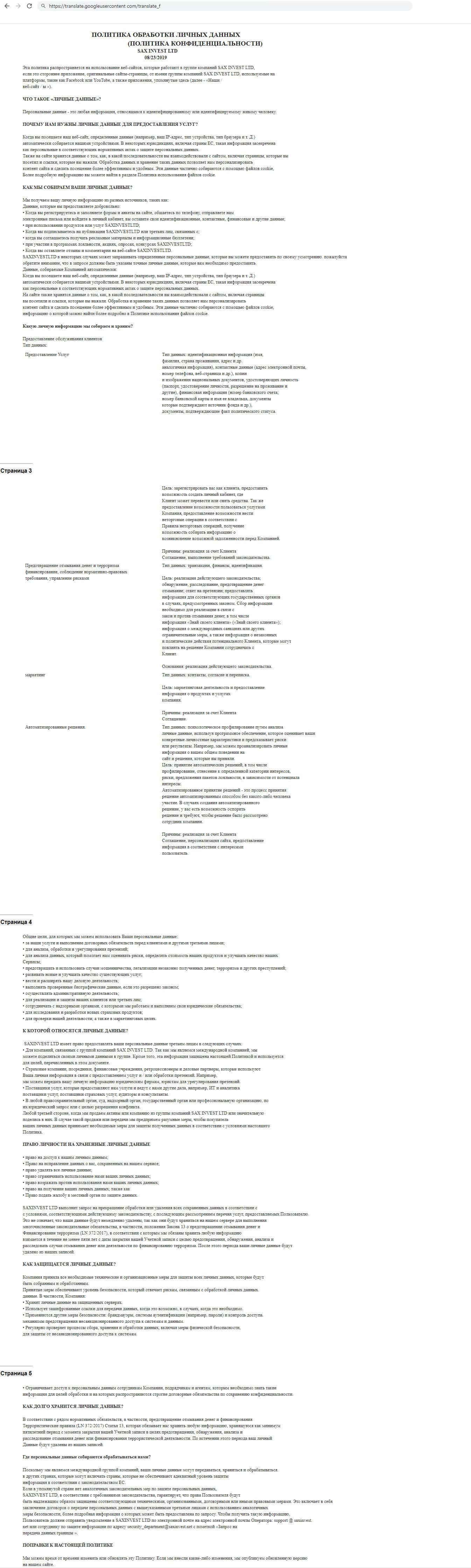 Мы предоставляем перевод политики конфиденциальности компании кидал SaxInvest Net на Русский язык.