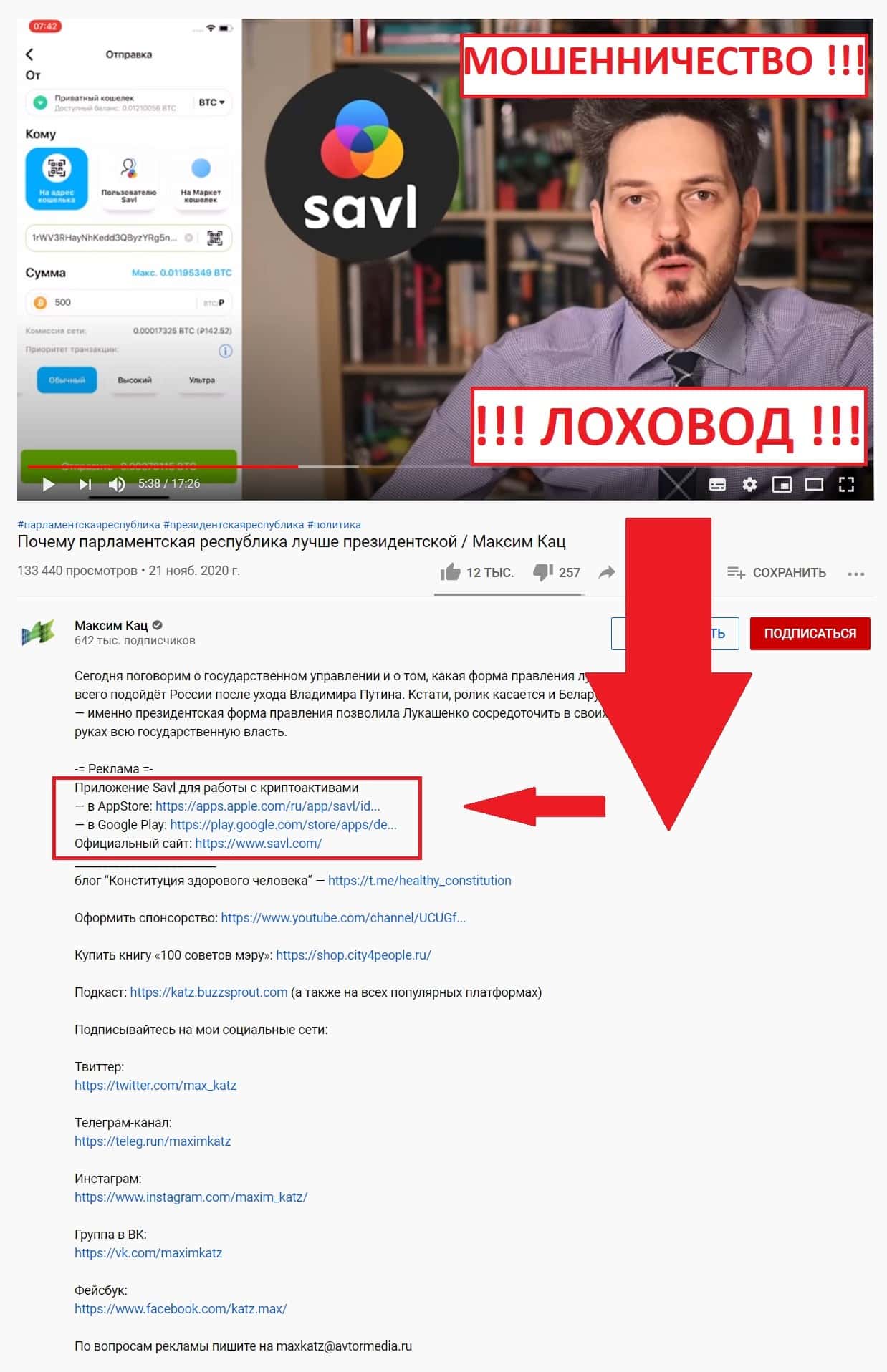 А пострадал человек в мошеннической компании Savl Com из-за лоховода Максима Каца, который продвигает данный криптовалютный скам-проект.