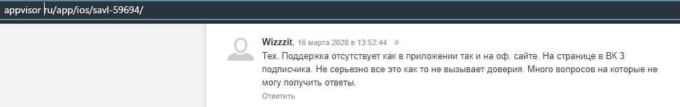 Один пользователь сети высказал свое мнение, касательно работы конторы Savl Com. По его словам, аферисты не имеют нормальную техническую поддержку, при чем она отсутствует как в приложении, так и на самом сайте. Группа в Вконтакте очень уж мало имеет подписчиков, что делает контору Савл вовсе не популярной.