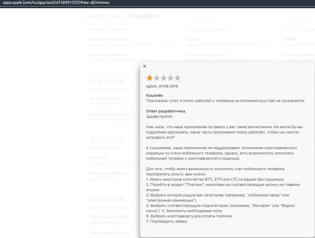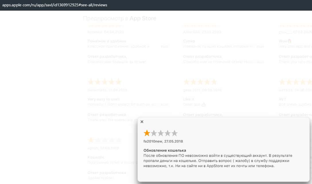 Ниже предоставлено еще одно замечание, касательно того, что после обновления программного обеспечения, в существующий аккаунт невозможно войти. Из-за этого пропали все деньги на кошельке, который находится в приложении Savl Com. Данная проблема так и не была решена.