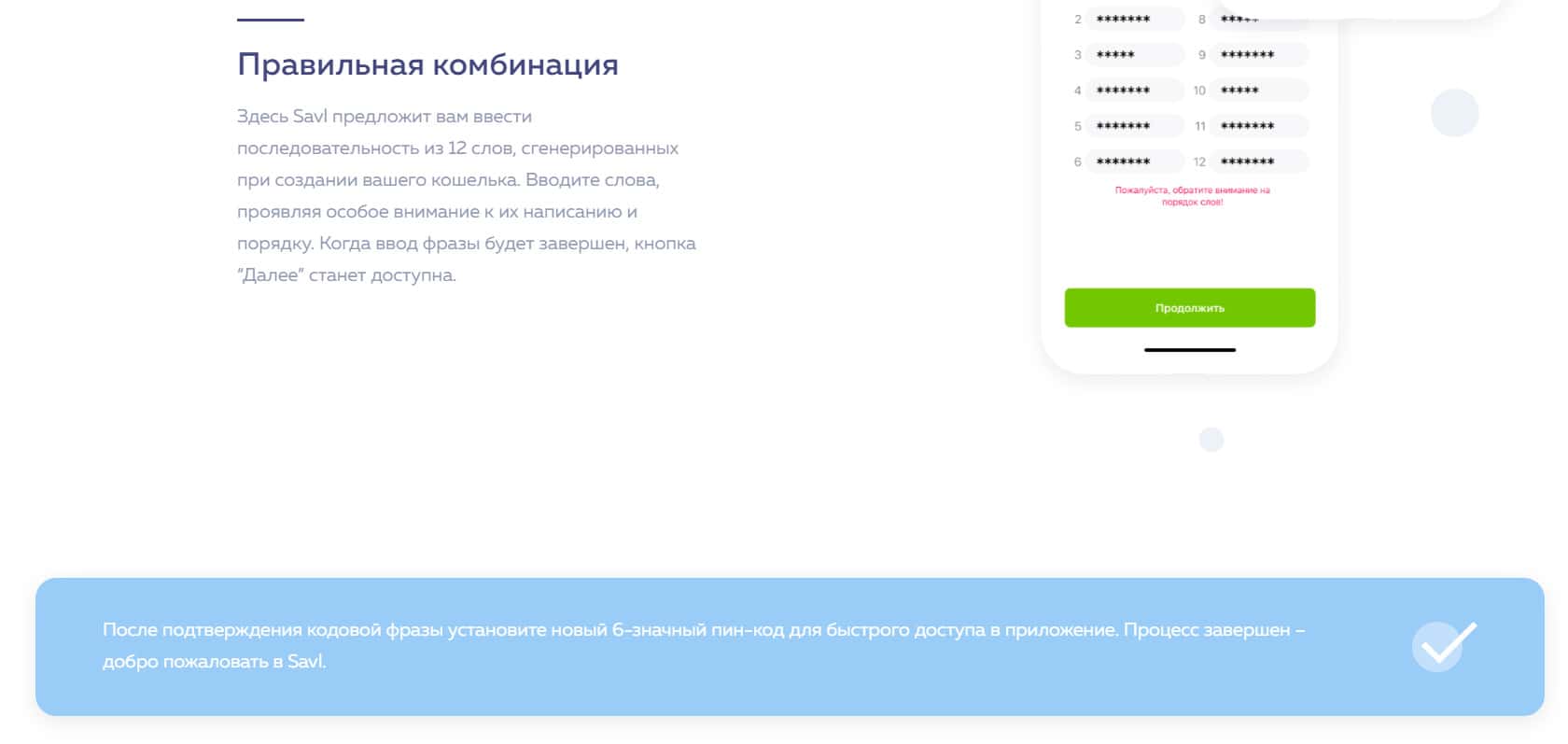 Все сгенерированные слова, которые указываются при регистрации счета, контора Savl Com также запоминает и может в любой момент получить доступ к деньгам жертвы. И не важно сколько их там 12 или 120, при чем в некоторых случаях, они могут просто зайти на ваш счет со своей внутренней системы.