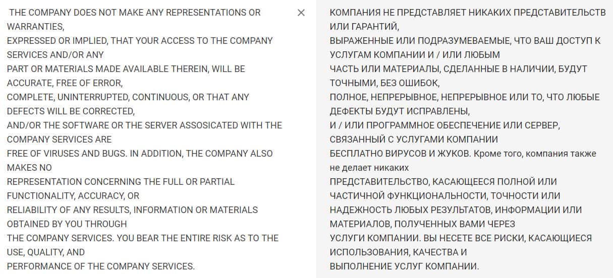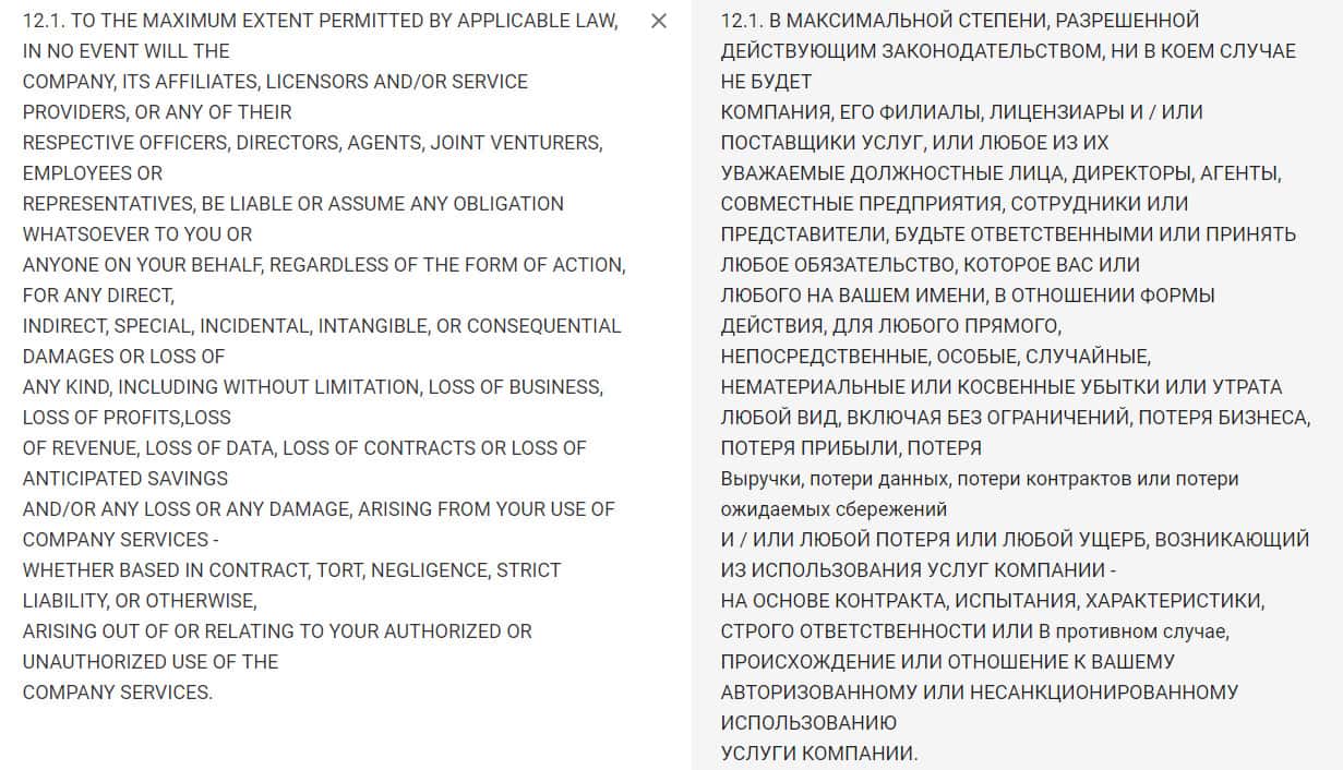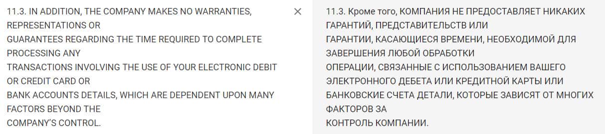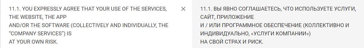 Компания Савл пишет в договоре, что она не предоставляет никаких гарантий касательно качества обслуживания клиента. То есть ситуация может дойти до такого момента, когда деньги с вашего счета вообще пропадут. Согласно документу, клиент не имеет право осуждать их и привлекать к ответственности