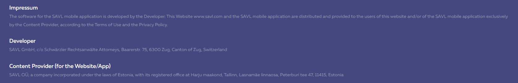 - разработчики SAVL GmbH - c/o Schwärzler Rechtsanwälte Attorneys, Baarerstr. 75, 6300 Zug, Canton of Zug, Switzerland;