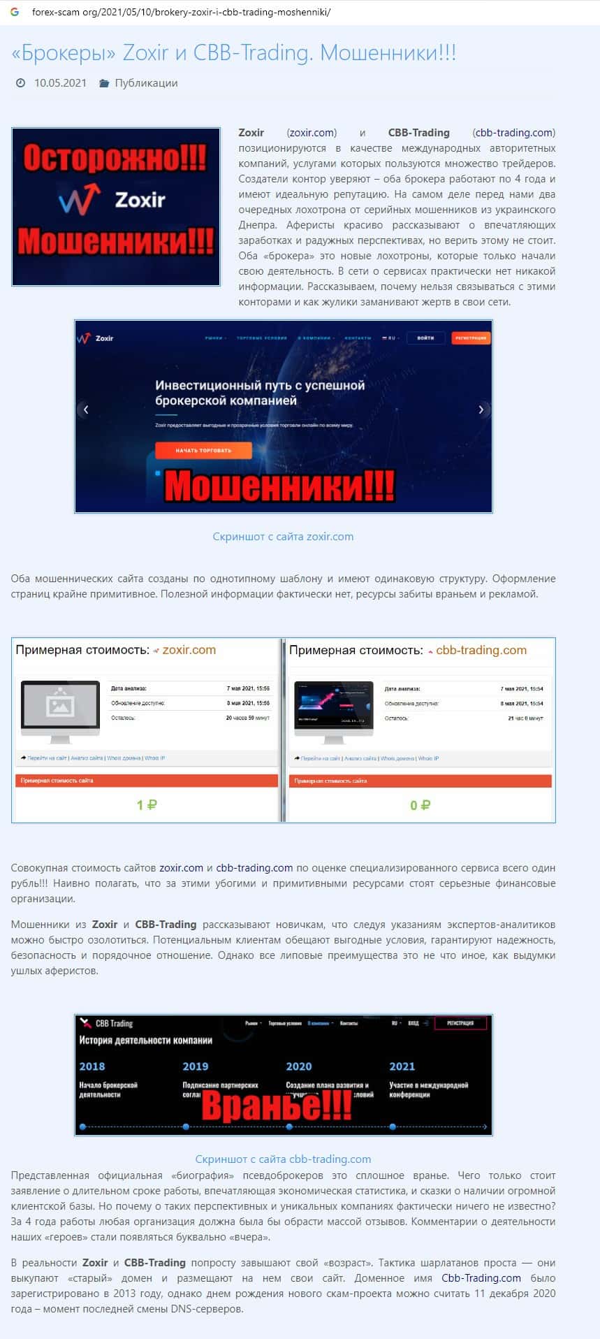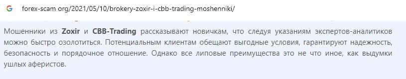 - Обманщики СББ Трейдинг работают в одной связке с мошенниками Zoxir
