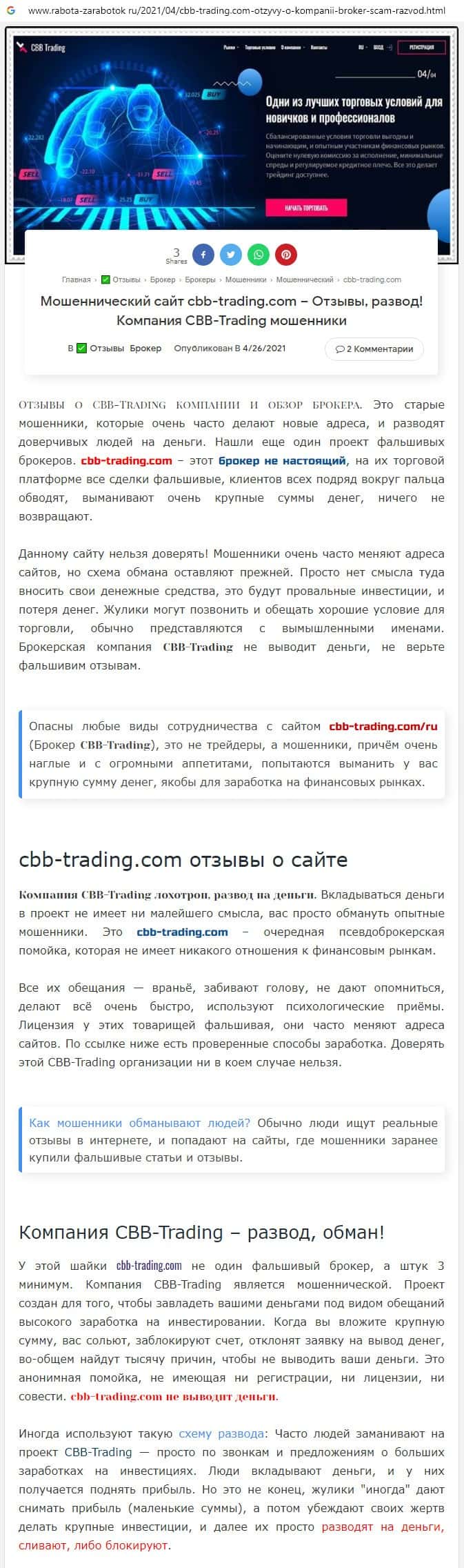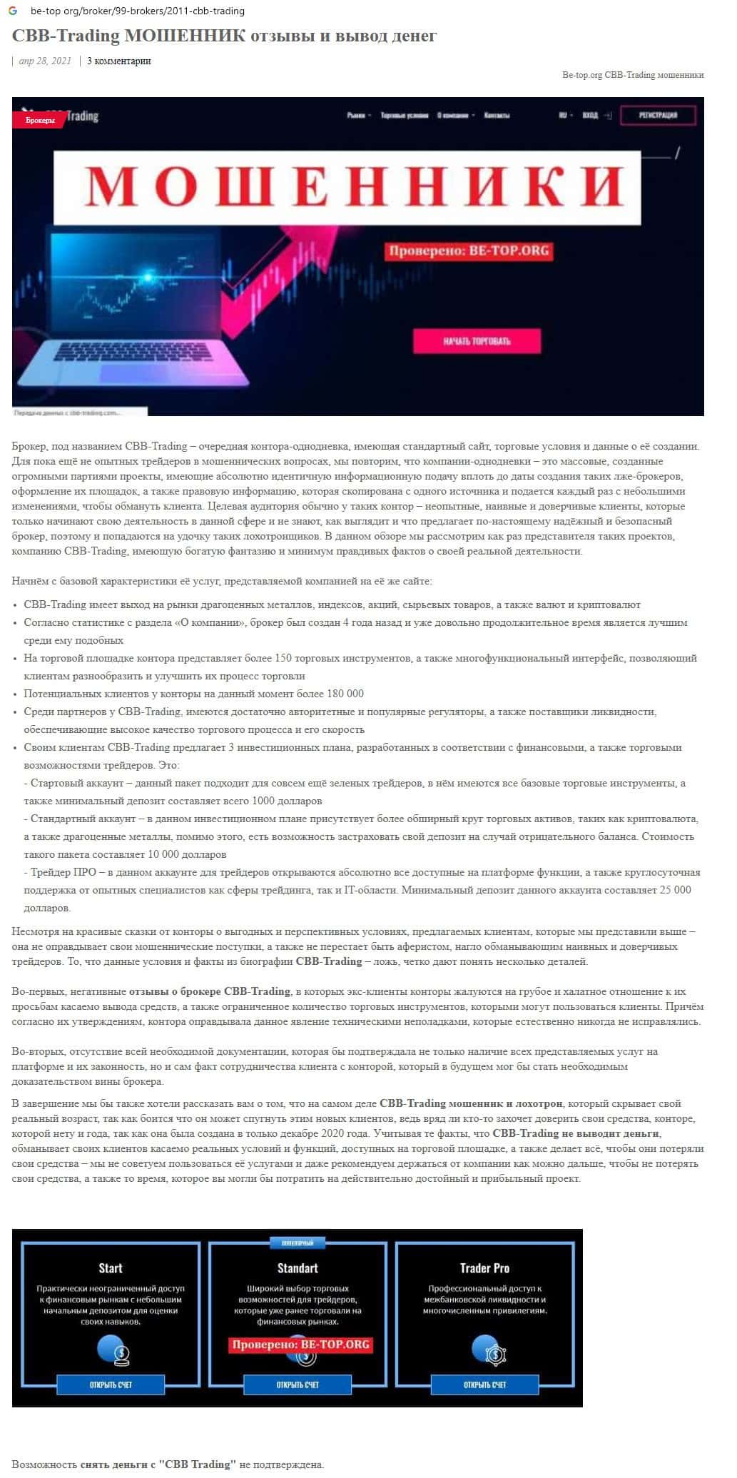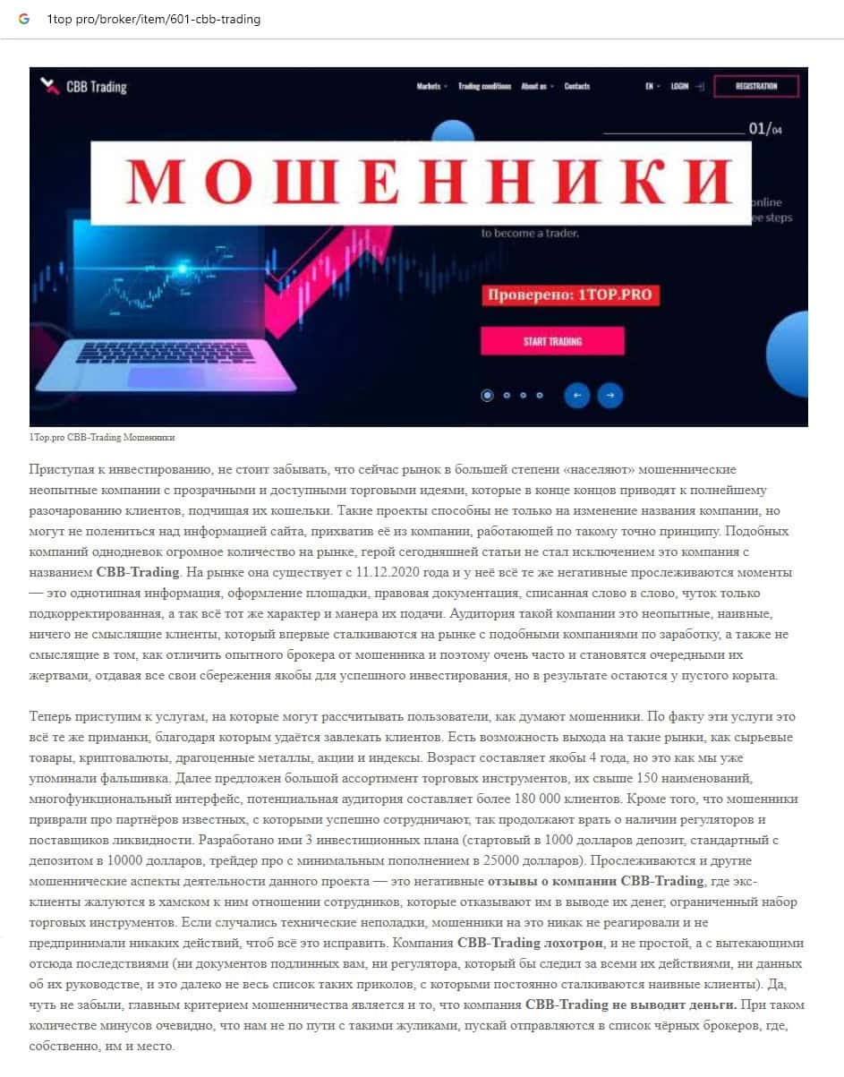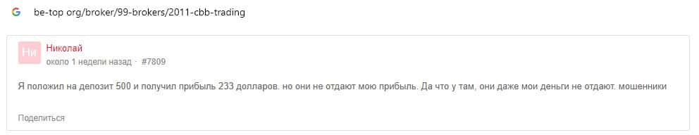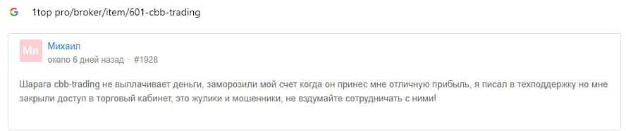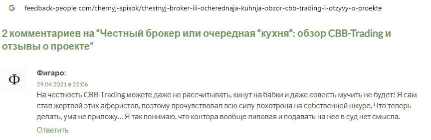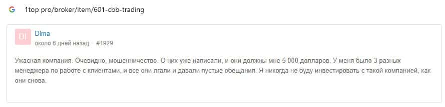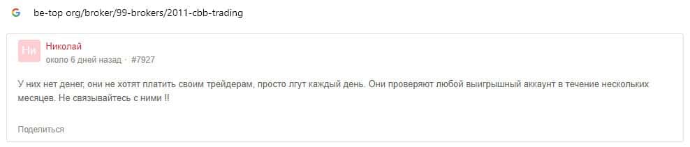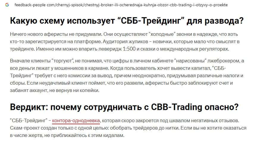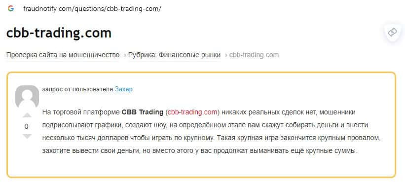 - Отзывы о шулерах CBB Trading, ныне присутствующие в сети-интернет