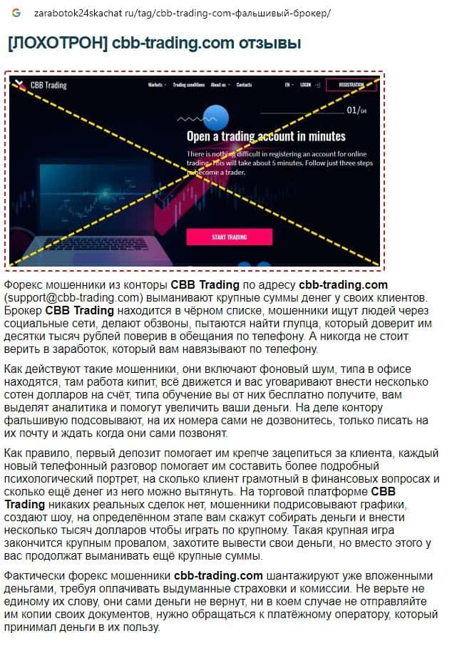 Отзывы о шулерах CBB Trading, ныне присутствующие в сети-интернет