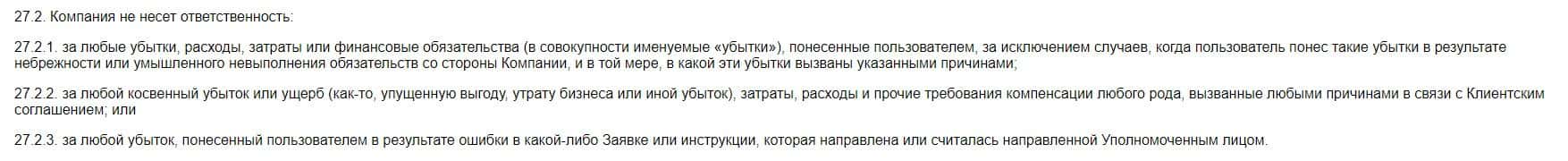 Согласно тому, что аферисты пишут в соглашении, скам-компания СББ Трейдинг не несет никакой ответственности за не полученную прибыль клиентом, а также за возможные убытки.