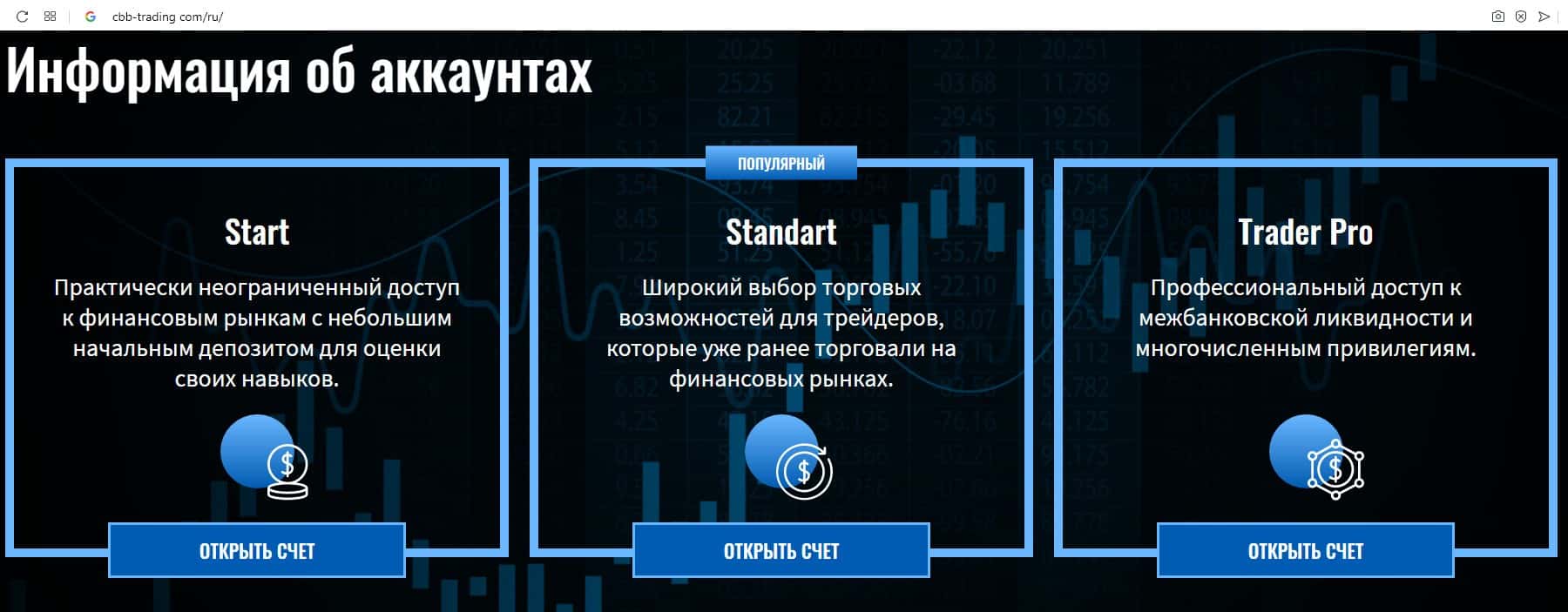 - Типы торгового счета на онлайн-ресурсе лохотрона CBB Trading