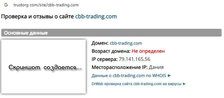 Проверка интернет-сервиса аферистов СББ Трейдинг на trustorg com показала, что возраст домена определить невозможно, мы имеем дело с очередной мошеннической организацией.