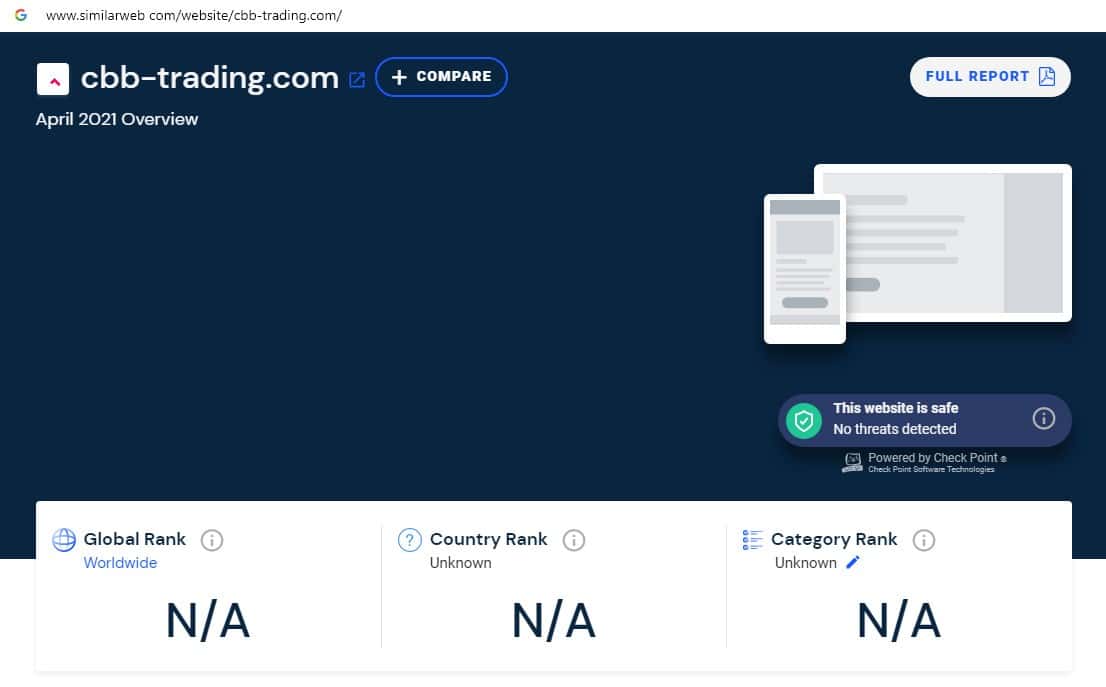 При проверке источников бренда по странам скам-конторы CBB Trading на сайте similarweb com, информация отсутствует, что является признаком фейкового лохотрона.