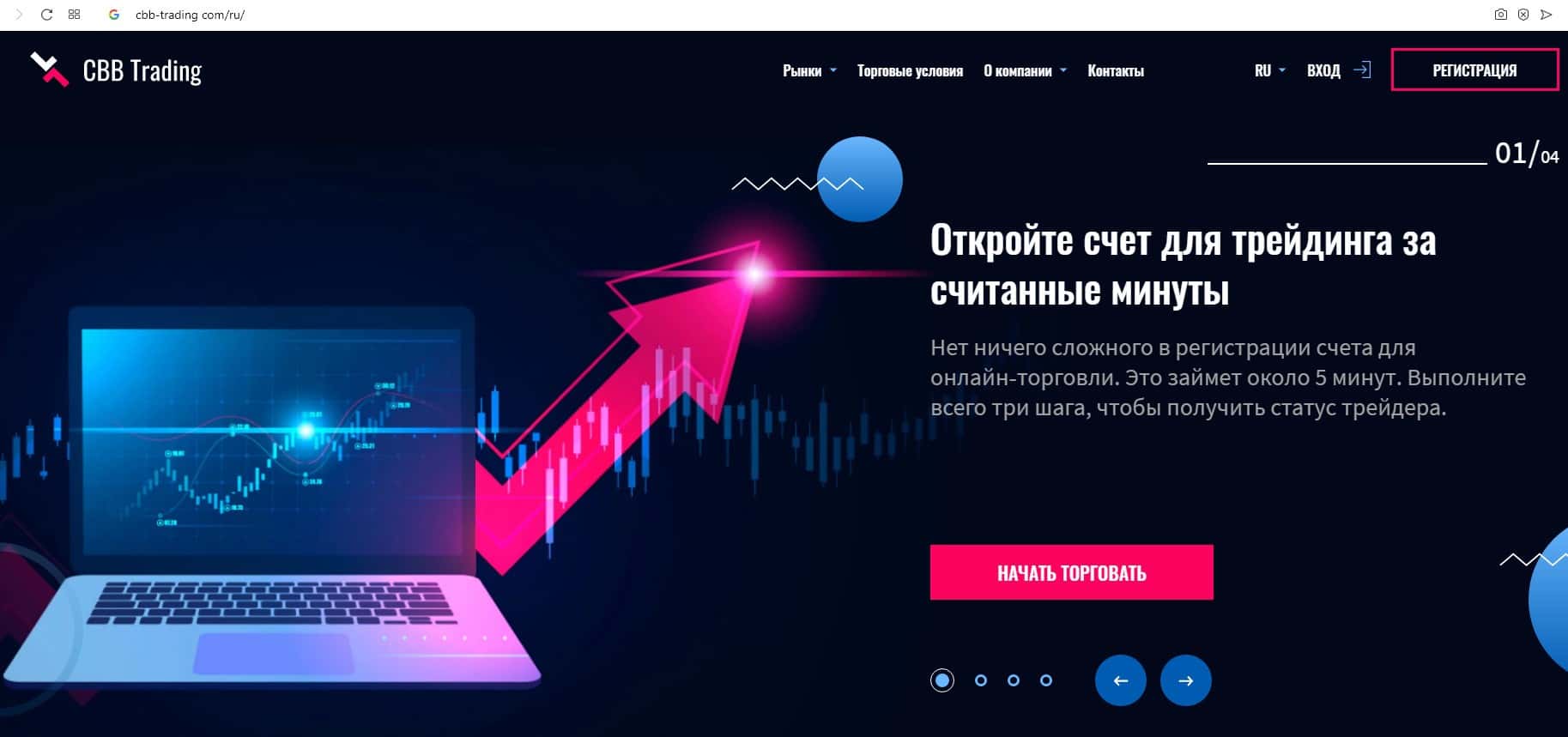 В данном разделе предлагаем увидеть скрин главной страницы веб-портала шараги CBB Trading, помните о том, что проекты часто меняют название домена своего сайта.