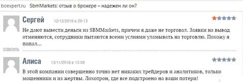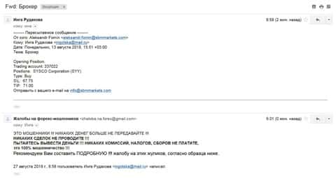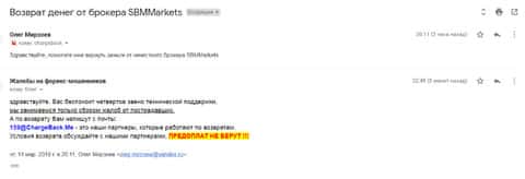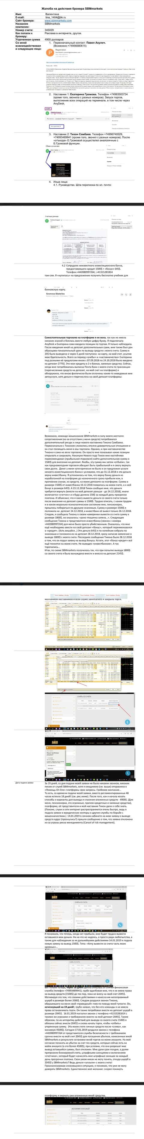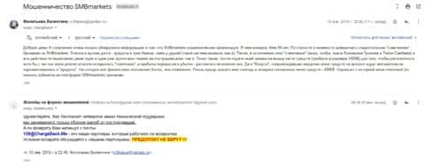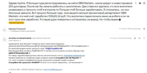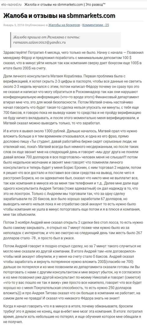 Жалоба на аферистов СБМ Маркетс от еще одного обманутого клиента