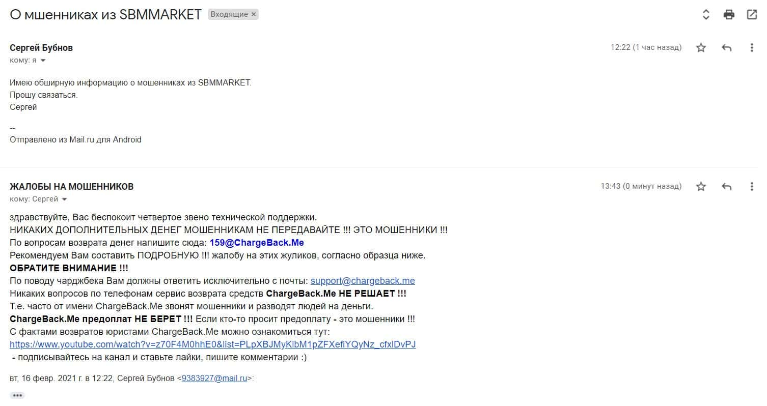 Далее представлено дополнение к предыдущему видео, где описано, как ChargeBack.Me помогла клиенту вернуть деньги из ДЦ SBMMarkets. На этот раз удалось вывести 9 000 рублей.