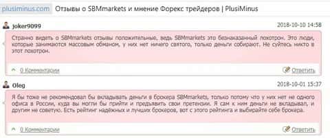 О жуликах SBM Markets в Интернете немало отзывов, и немало положительных, написанных как под копирку. Всем уже понятно, для чего это делается, чтобы заработать кредит доверия у клиентов. Чтобы те вносили всё больше и больше. Деньги с конторы СБМ Маркетс они уже не вернут, и, купившись на покупные позитивные отзывы, останутся ни с чем. Но и при этом, реальных отзывов о конторе SBMMarkets тоже более чем достаточно, вложившиеся в неё люди, которые потеряли все свои деньги, предостерегают остальных.