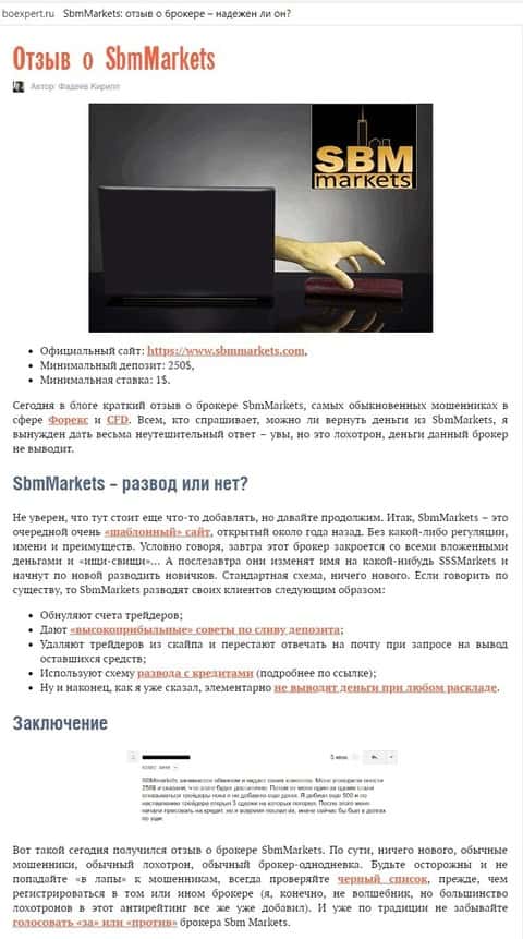 - Интернет-ресурс boexpert ru о лохотроне СБМ Маркетс