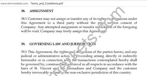 С документацией жулики СБМ Маркетс не запаривались. Мало того, что все документы на английском (чтобы клиент не заморачивался его прочтением), так еще и название сайта на каждой странице преграждает обзор, делая невозможным прочтение трети текста документа. Кроме того, данные документы – это не текст, а скопированные с Интернета фото. В этом можно удостоверится, просто попробовав выделить слова в документе. Стоит ли объяснять что серьезные компании так не делают. Более халтурных жуликов чем SBMMarkets можно только поискать.