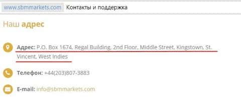 Отсутствие реального руководства или реальных контактов конторы СБМ Маркетс