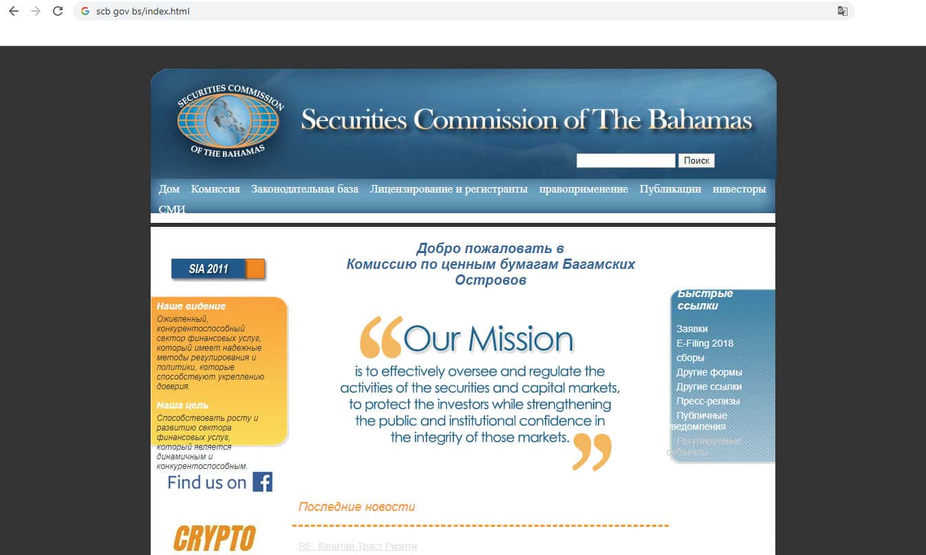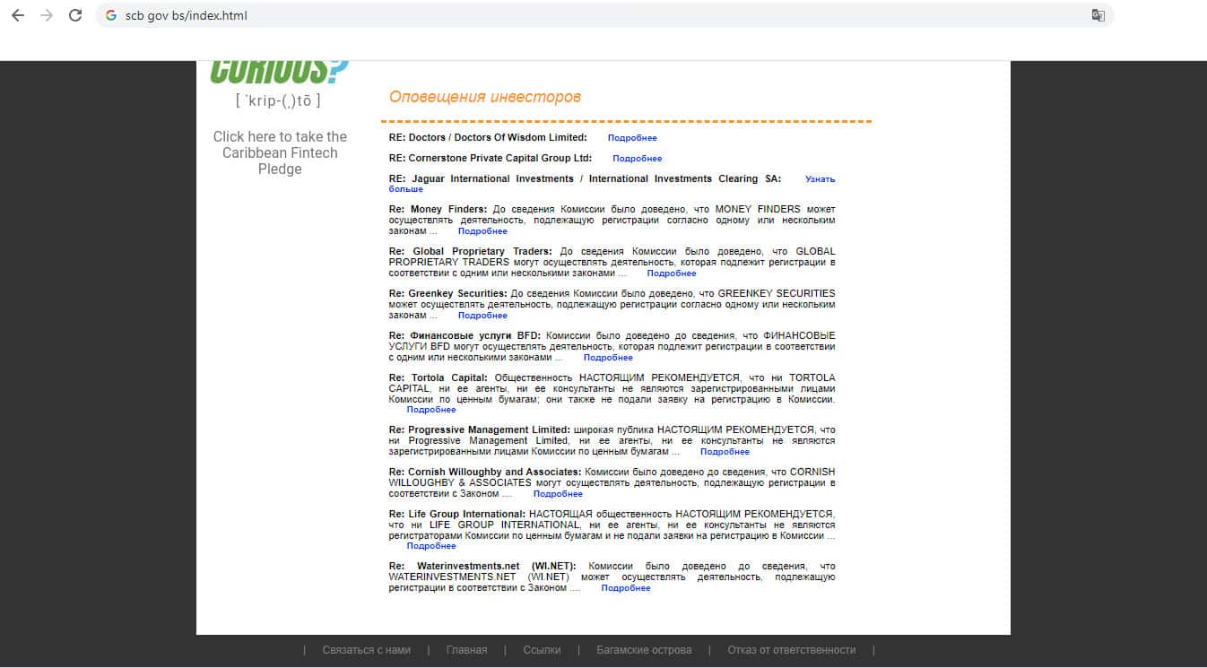 - Отсутствует информация о кидалах под названием Комиссия по ценным бумагам Багамских островов