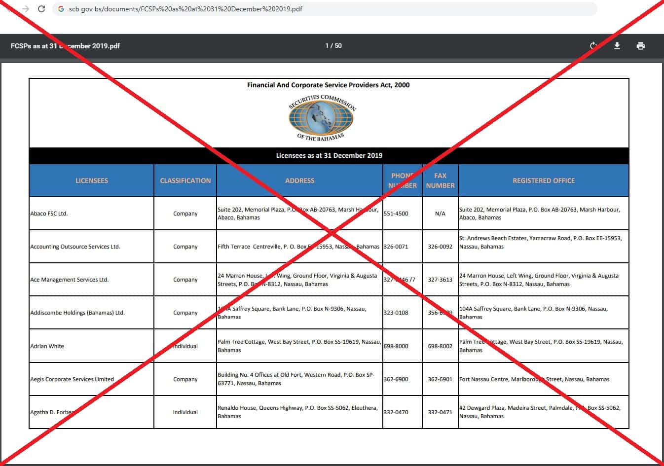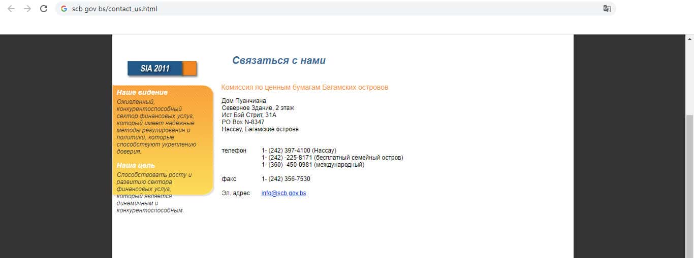 - Контактная информация жуликов (Комиссия по ценным бумагам Багамских островов)
