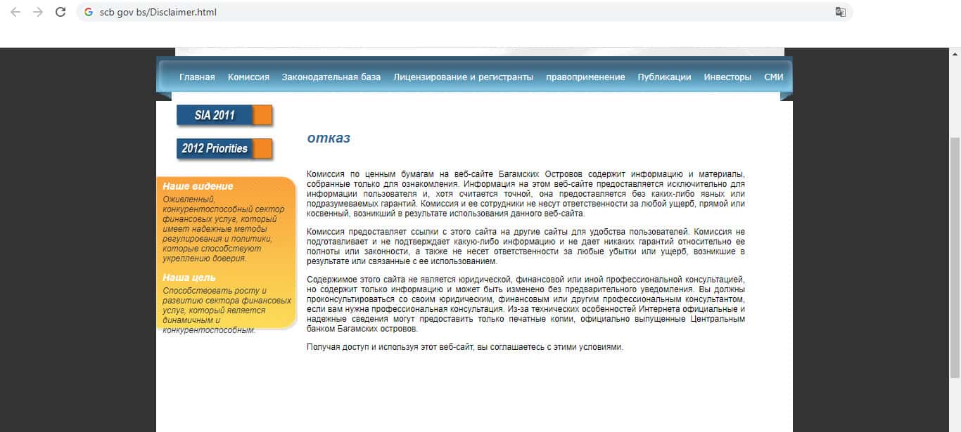 Комиссия по ценным бумагам Багамских островов отказываются от ответственности