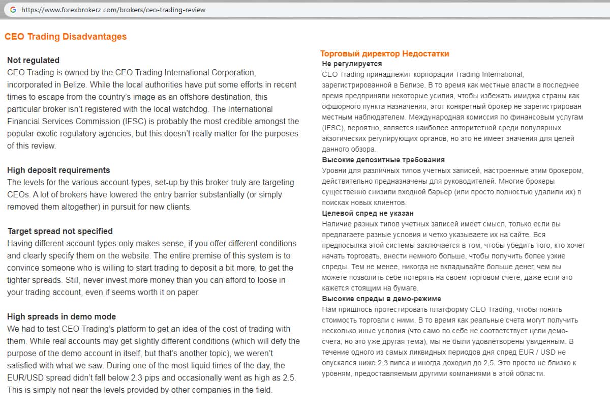 - Гневный отзыв в статье одного из сайтов об шулерах СЕО Трейдинг в сети