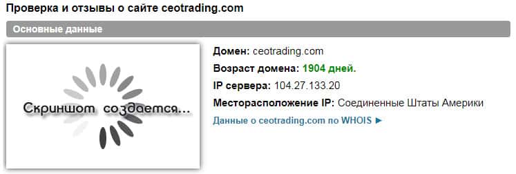 Данные о домене мошеннической крипто-кухни СЕО Трейдинг предоставил нам один из сервисов