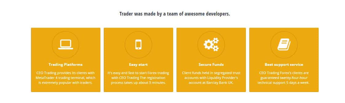 Далее, мошенники описывают и рекламирую себя же. Контора СЕО Трейдинг заманивает пользователя на "выгодные" предложения, на которые ведутся новички в трейдинге и даже опытные трейдеры, как бы это странно не звучало. Всё потому, что они не внимательны в перечитывании документов о компании и не проверяют данные, а затем, отдают деньги.