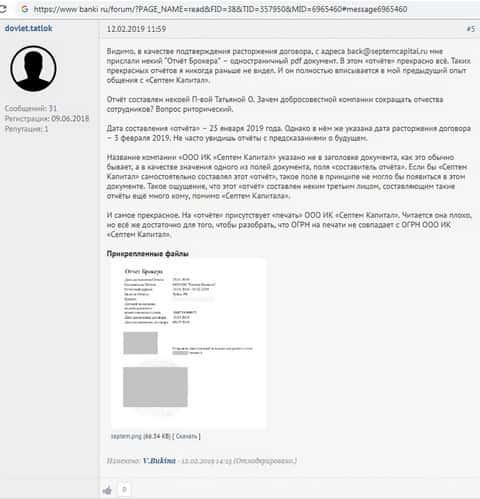 Подозрение конторы SeptemCapital в мошенничестве