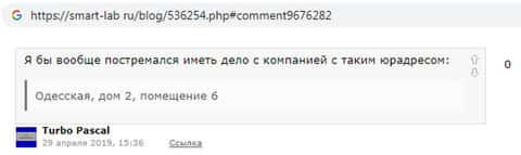 Отзыв пользователя о СептемКапитал наводит на определенные, не очень хорошие мысли об этой шарашкиной конторе. Адрес, который дает жулье, не может принадлежать серьезному брокеру. Это лишь один из звоночков, который позволяет заподозрить заведение с улицы Одесской в жульничестве и обмане.