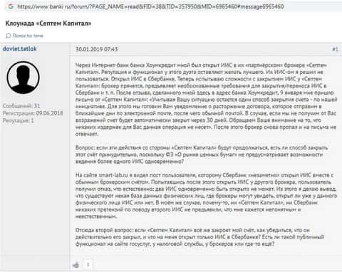- Ещё одна претензия к СептемКапитал о хищении клиентских средств