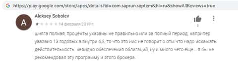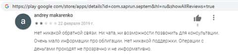 Отзыв о разводе людей командой СептемКапитал при помощи мобильного приложения