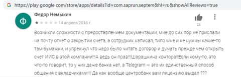 Пользователи не рекомендуют приложение SeptemCapital к использованию