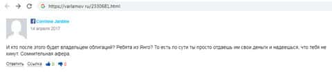 Детальный разбор полетов от вкладчика SeptemCapital наглядно показывает, что организация сотрудничает с мошенниками. Контора предлагает своим клиентам скупать облигации банкротов, по всему ясно, что в шарашка являет собой лохотрон по разводу и кидалову подписавшихся на него бедолаг.