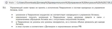 В разделе о выводе активов мошенники СептемКапитал указали, что имеют право не принимать к исполнению вывод клиентских денег. Жулики в любом случае найдут в своем соглашении официальную отговорку, почему вывод средств запрещен, так что наивному клиенту не светит никакая прибыль.
